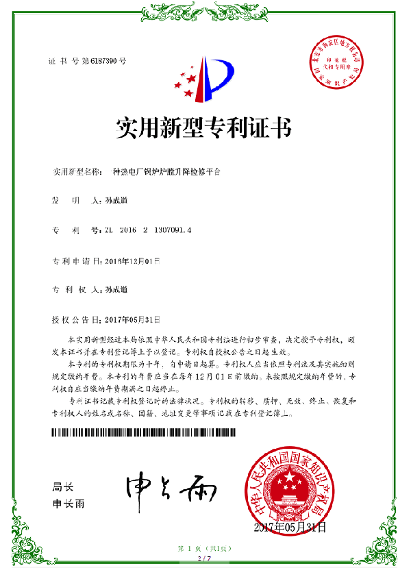 新聞中心下支撐折疊式鍋爐爐膛檢修平臺行業(yè)首項國家專利發(fā)明者